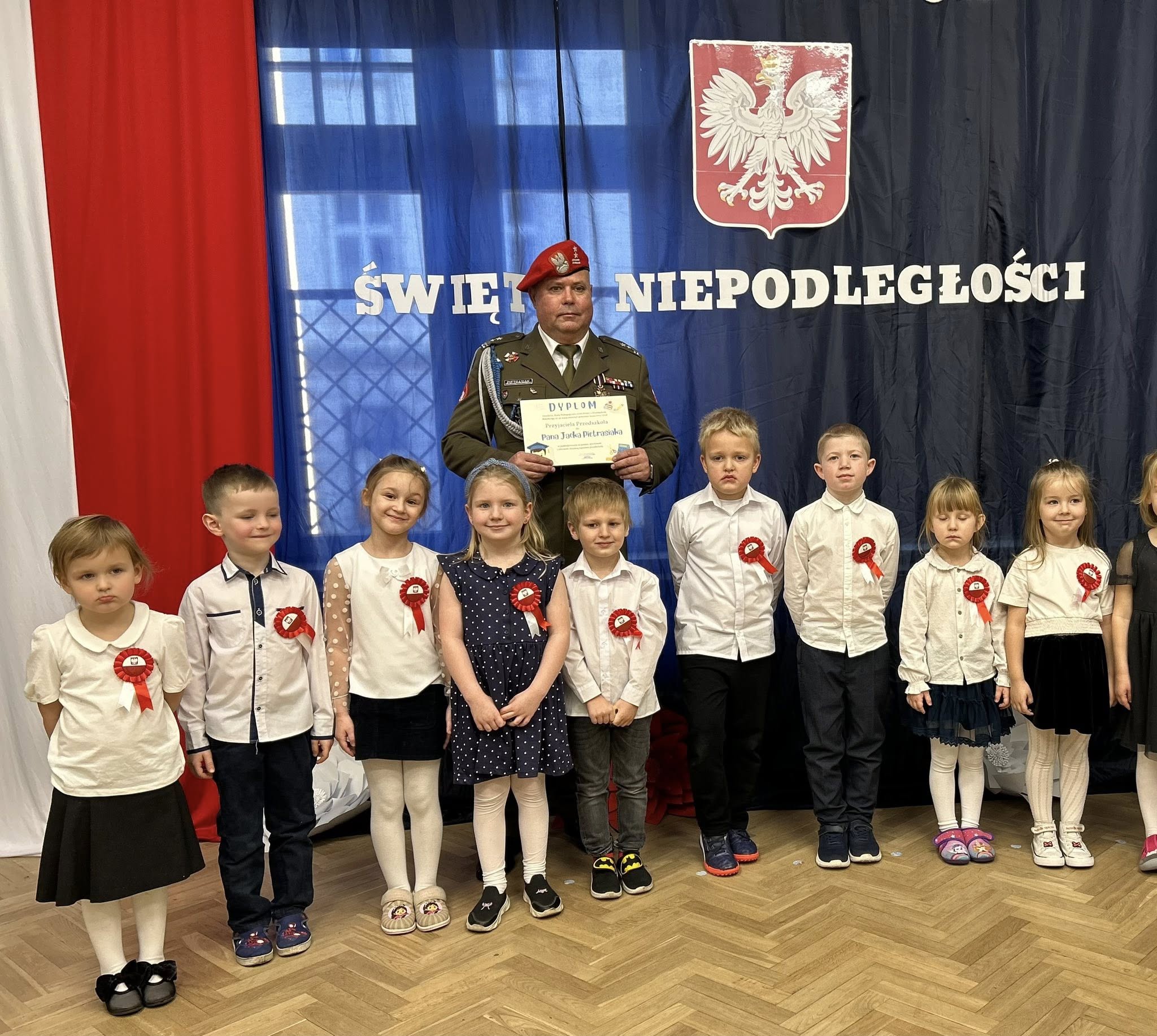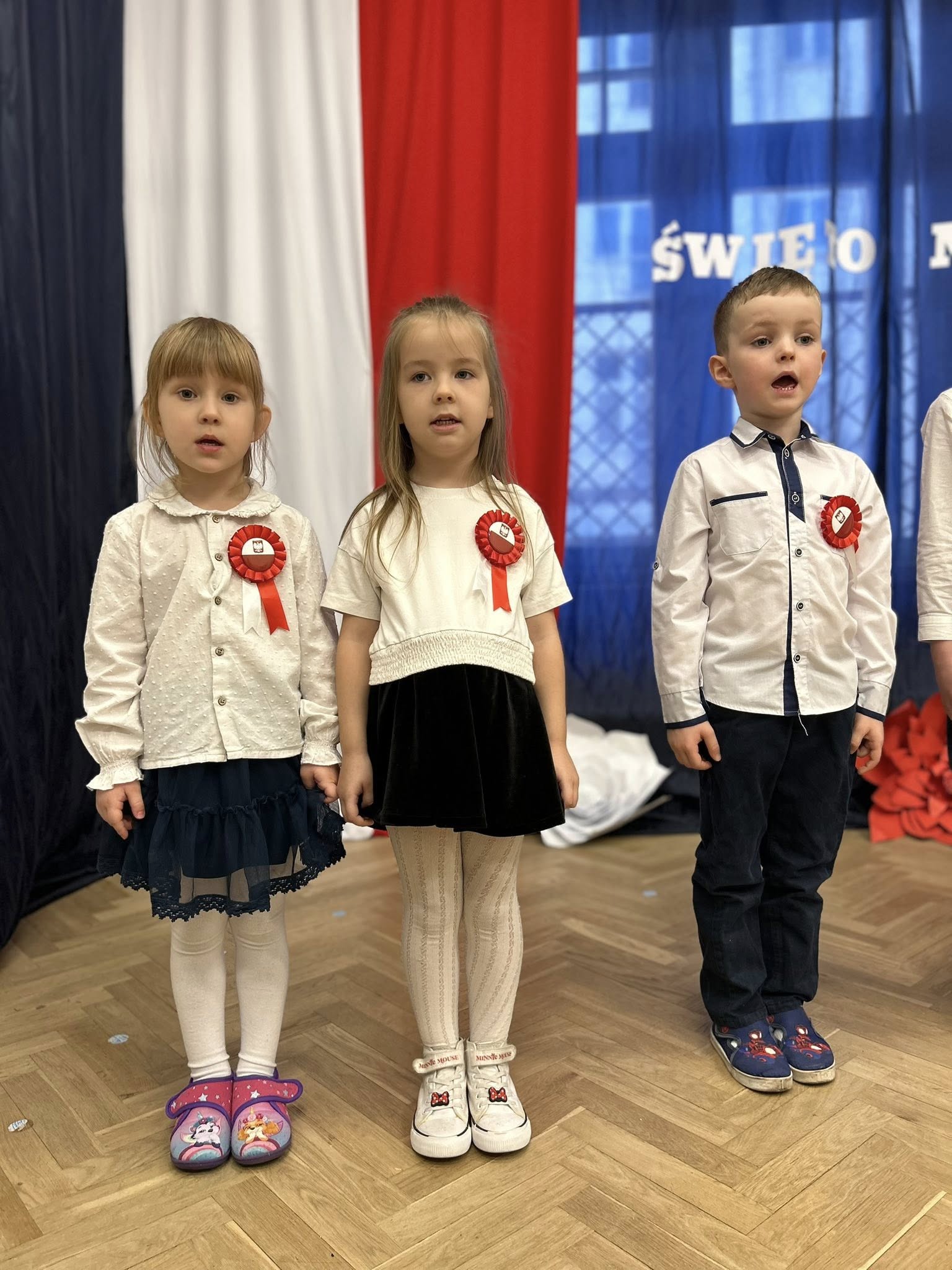 Obecne podczas uroczystości symbole narodowe jak godło, flaga i barwy biało-czerwone zarówno w sali jak i w wierszach oraz piosenkach mocno podkreślały akcent patriotyzmu. Na koniec uroczystości odśpiewaliśmy Hymn Polski.