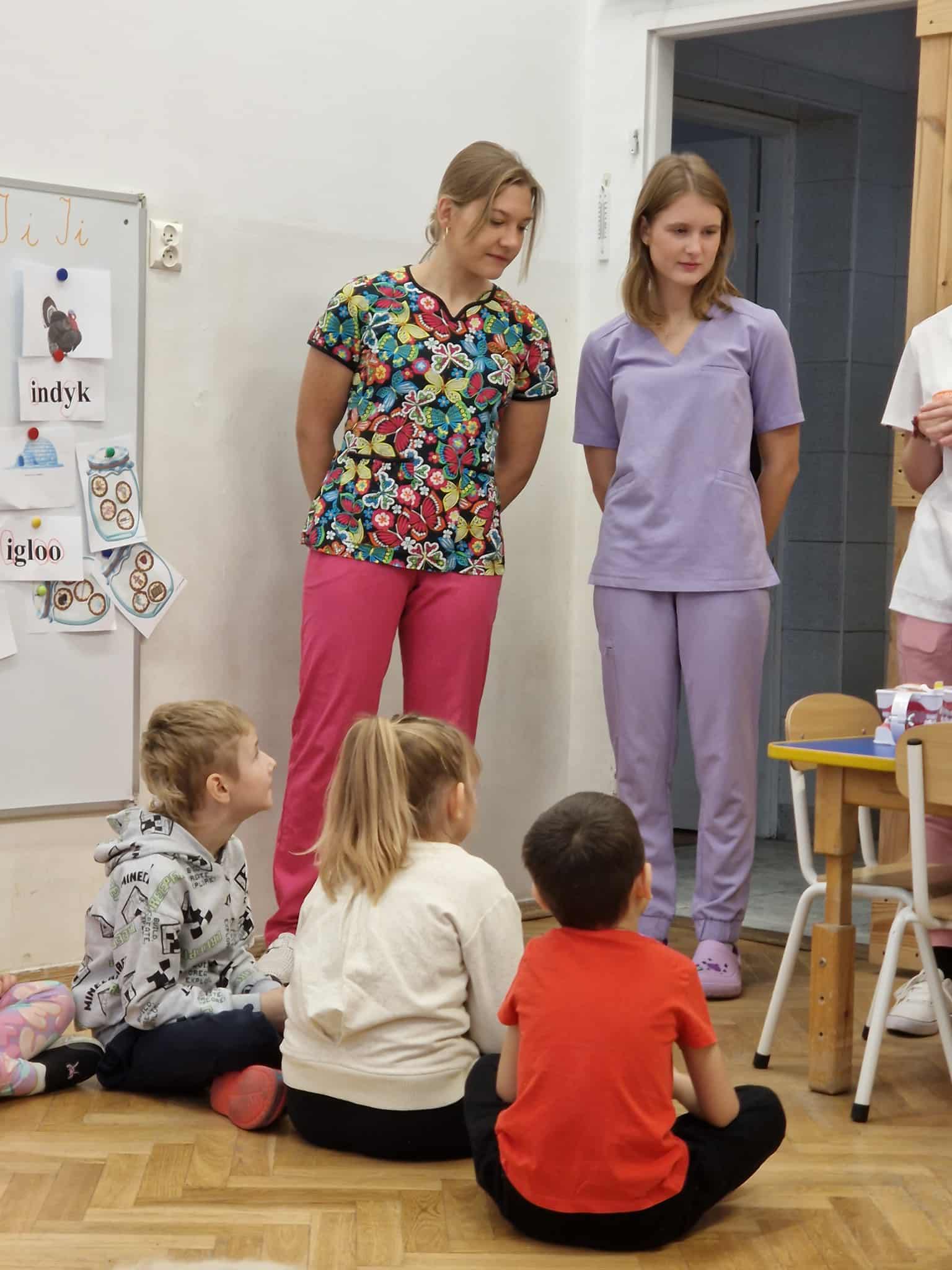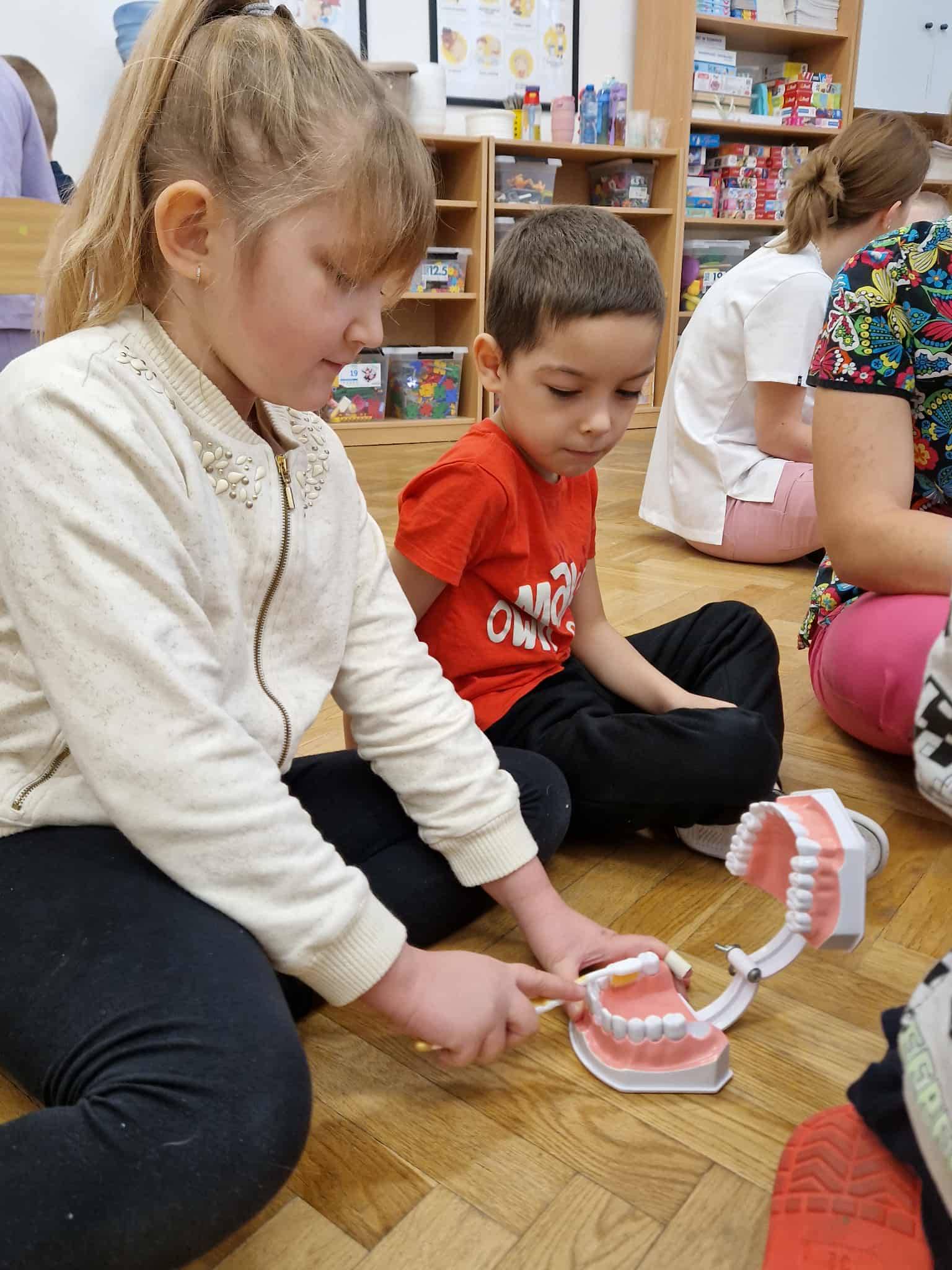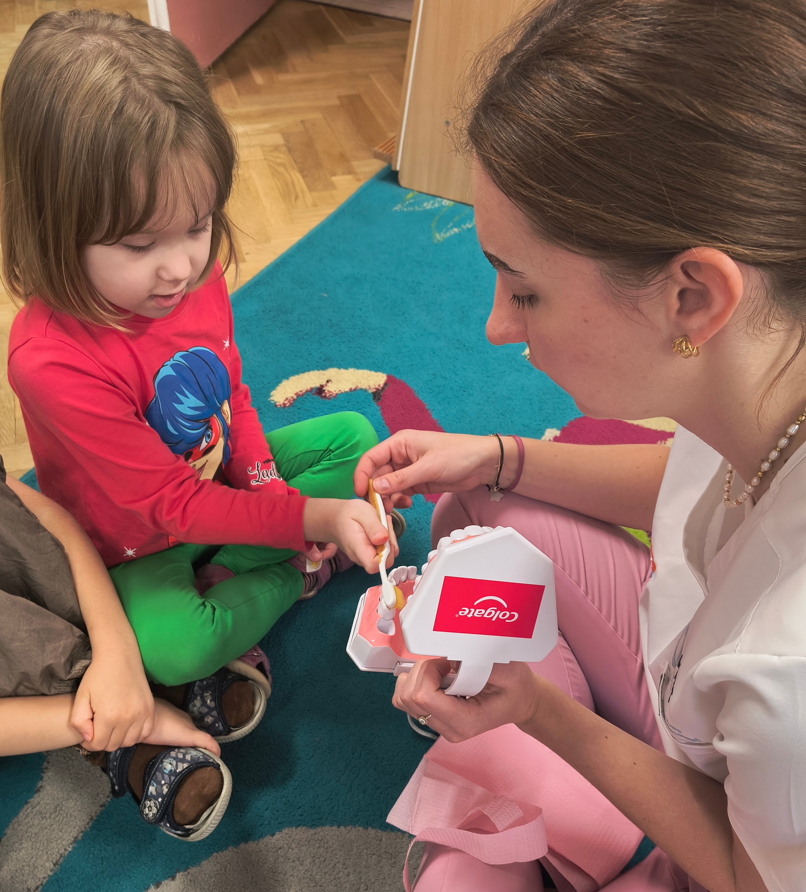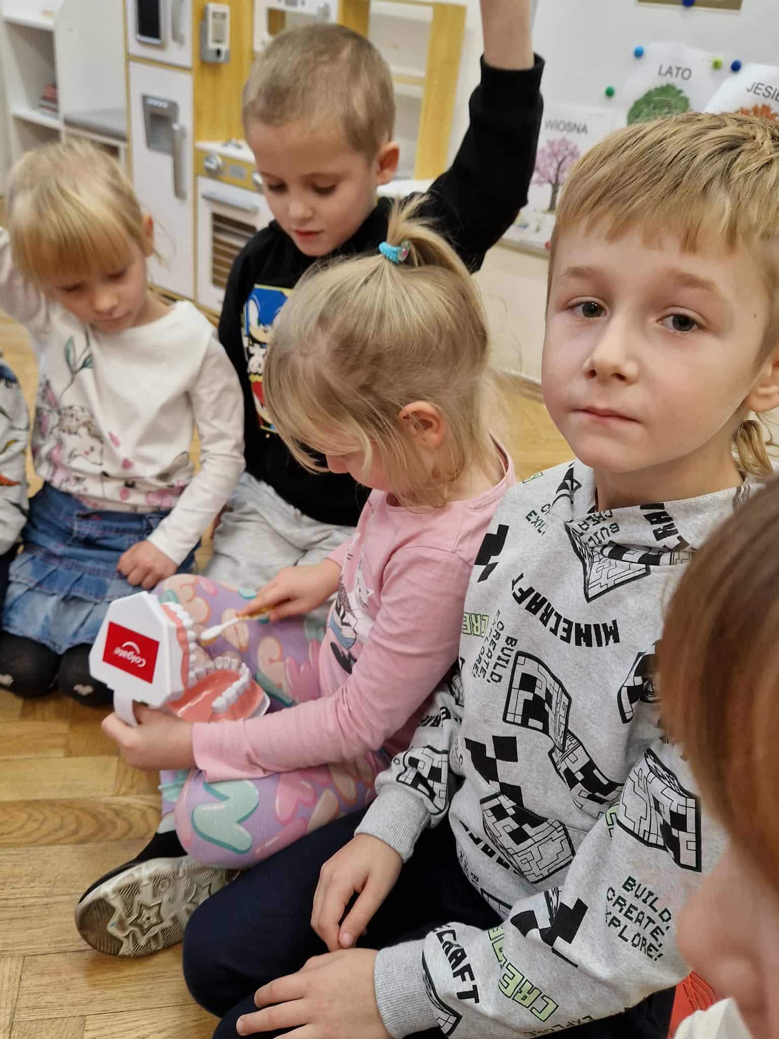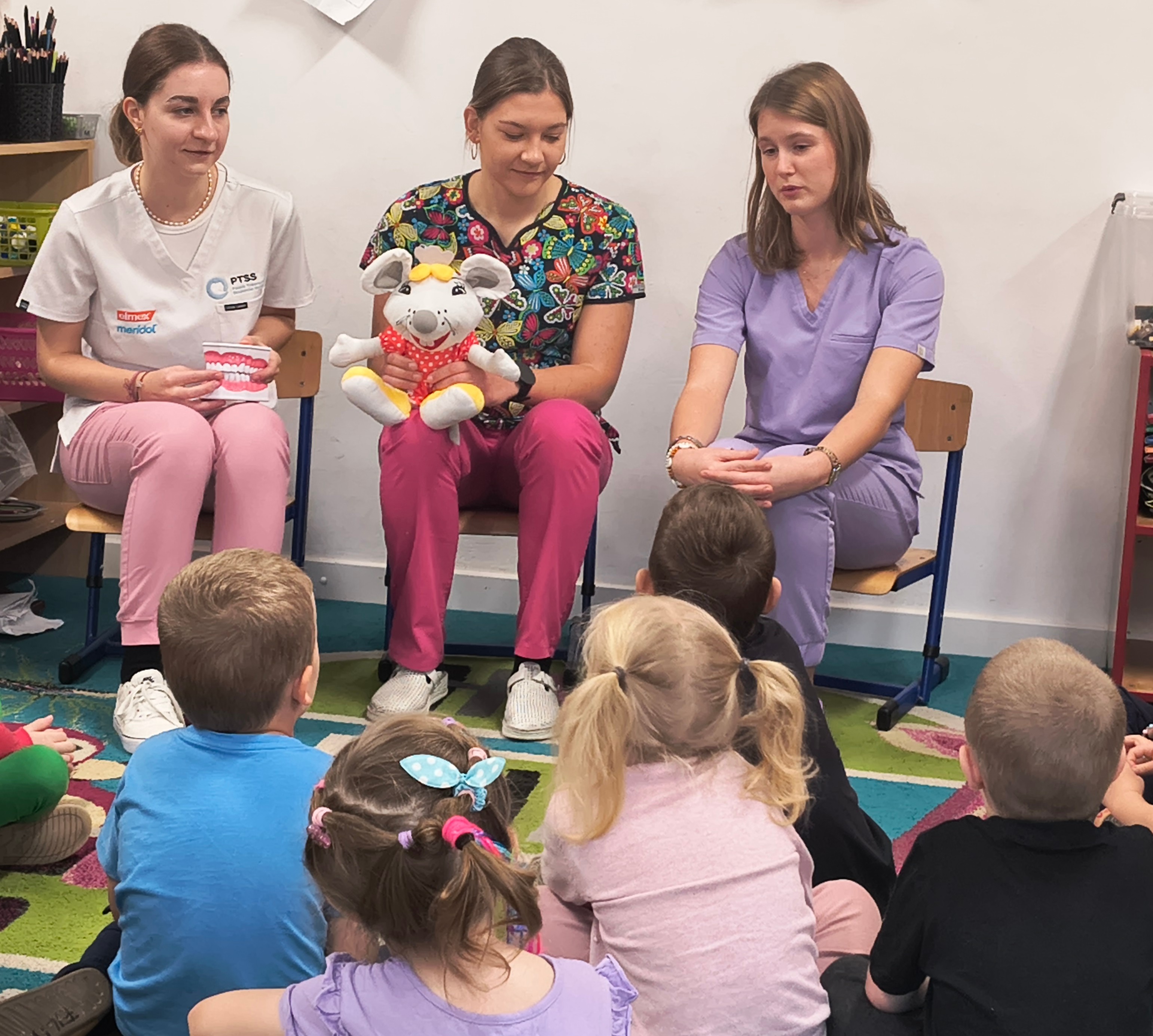 Nasze przedszkole odwiedzili studenci z Polskiego Towarzystwa Studentów Stomatologii - oddział w Łodzi. Studenci pokazali jak prawidłowo myć zęby, następnie każde dziecko mogło spróbować swoich sił na modelu szczęki. Na koniec zajęć każdy przedszkolak za udział w spotkaniu otrzymał pastę, naklejkę oraz kalendarz. Studentom stomatologii bardzo dziękujemy za wizytę, ciekawe zajęcia oraz upominki