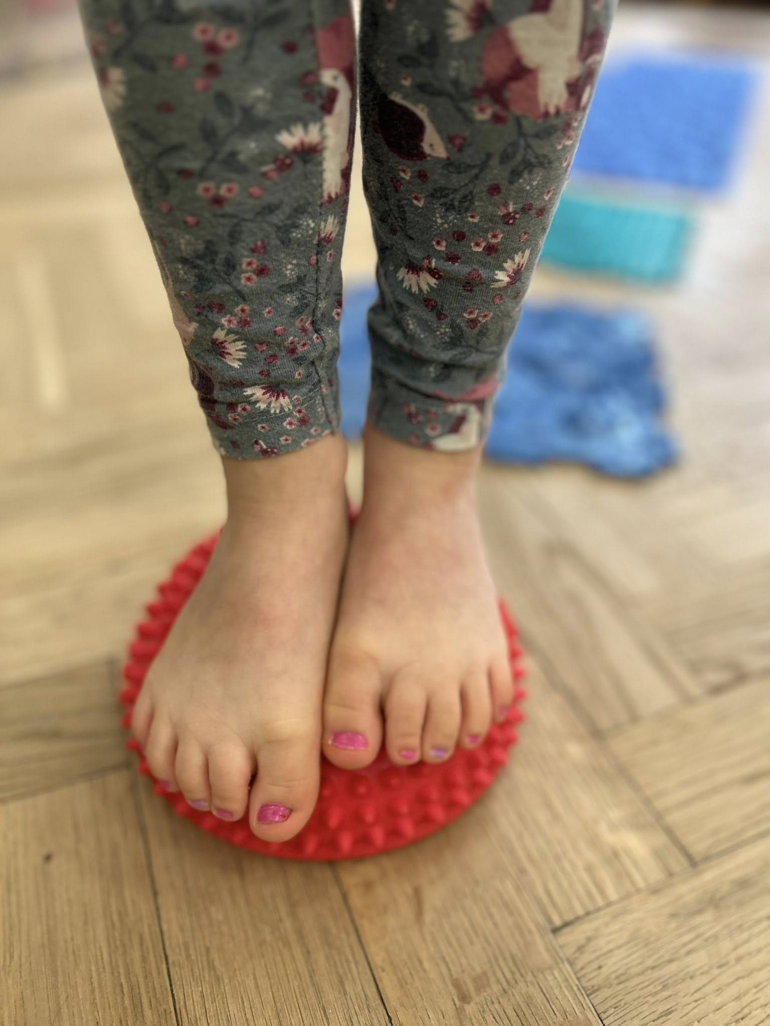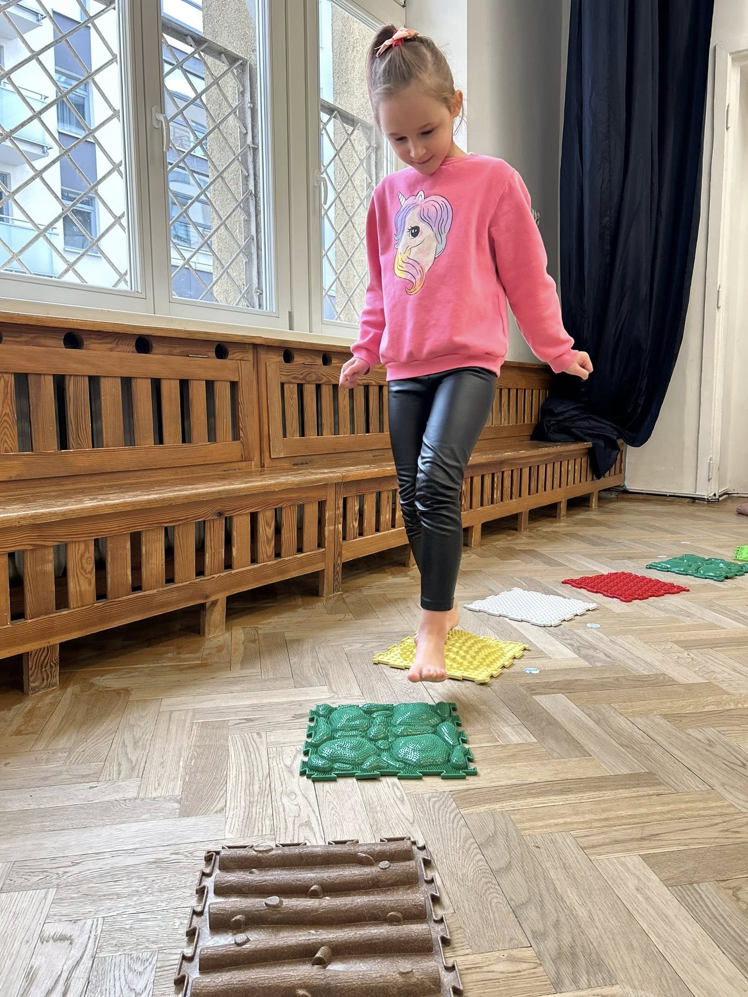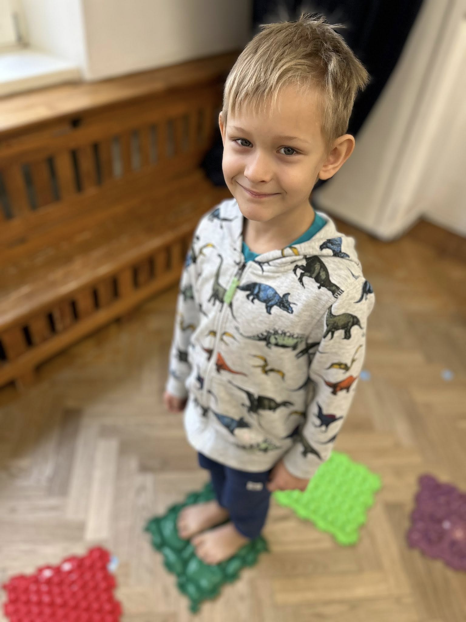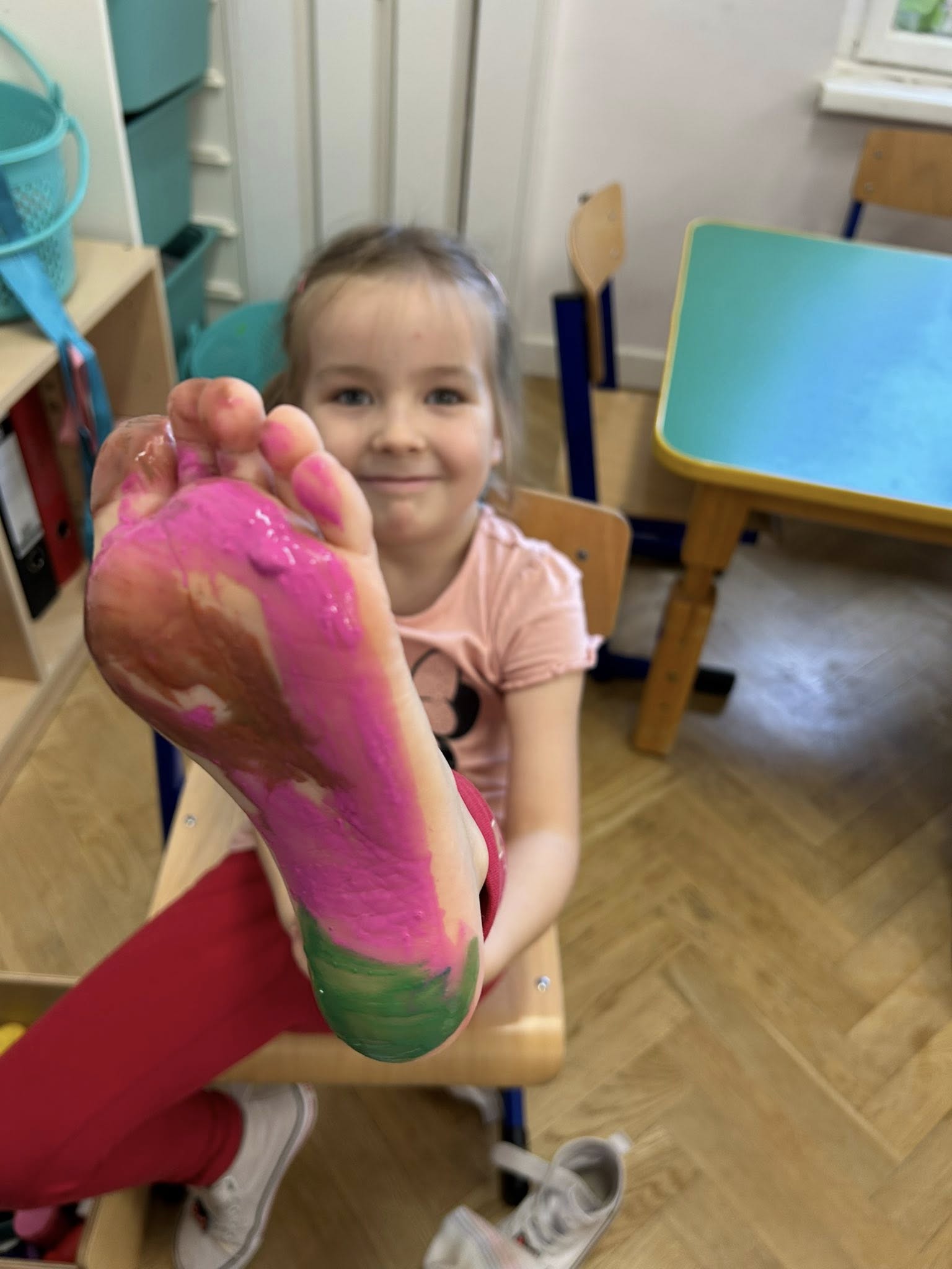 We wtorek 21 pażdziernika obchodziliśmy Dzień Bez Skarpetek. Wszystkie dzieci zdjęły buty i skarpetki, a następnie ćwiczyliśmy stopy - chodziliśmy po ścieżce sensorycznej.