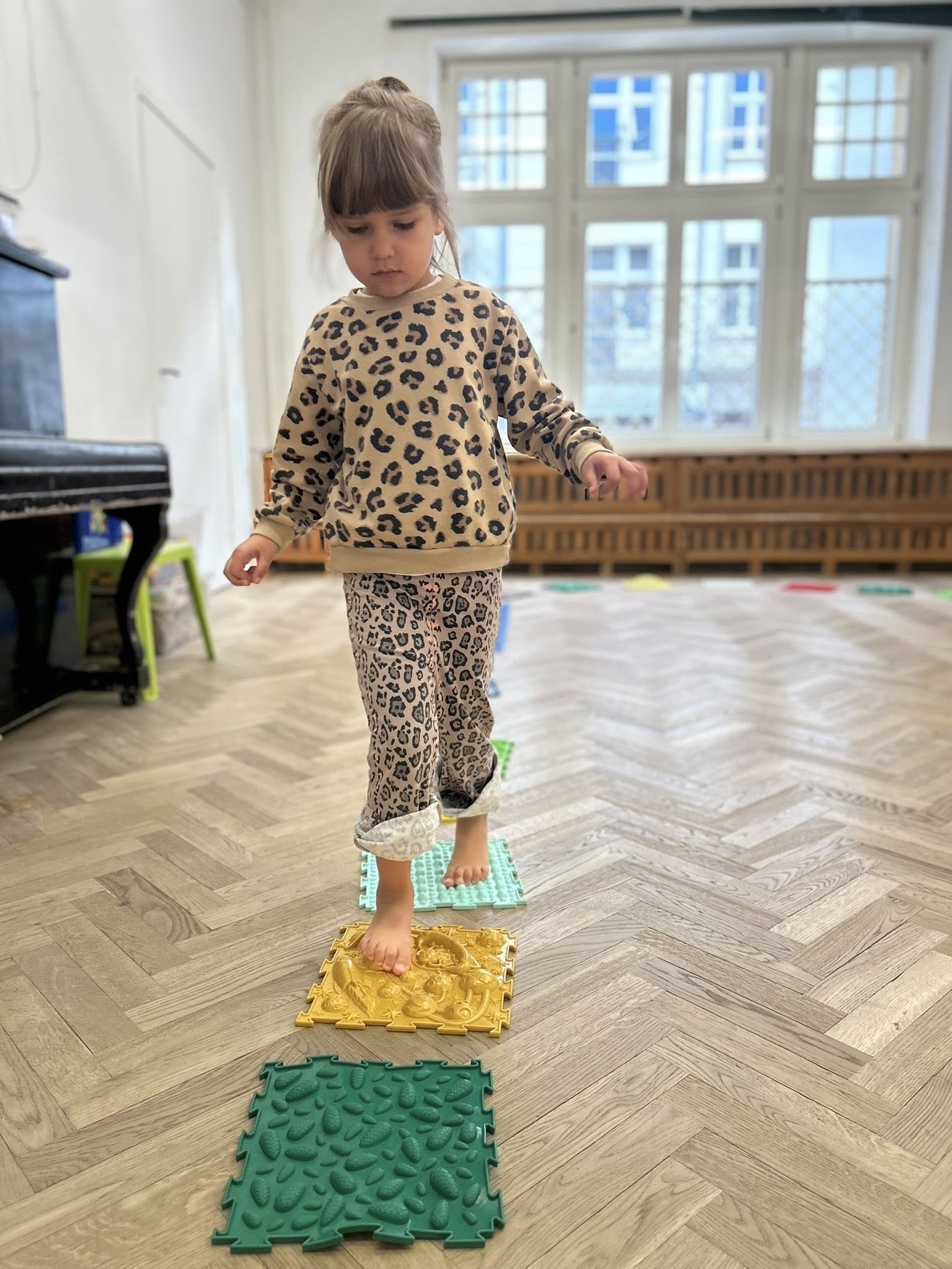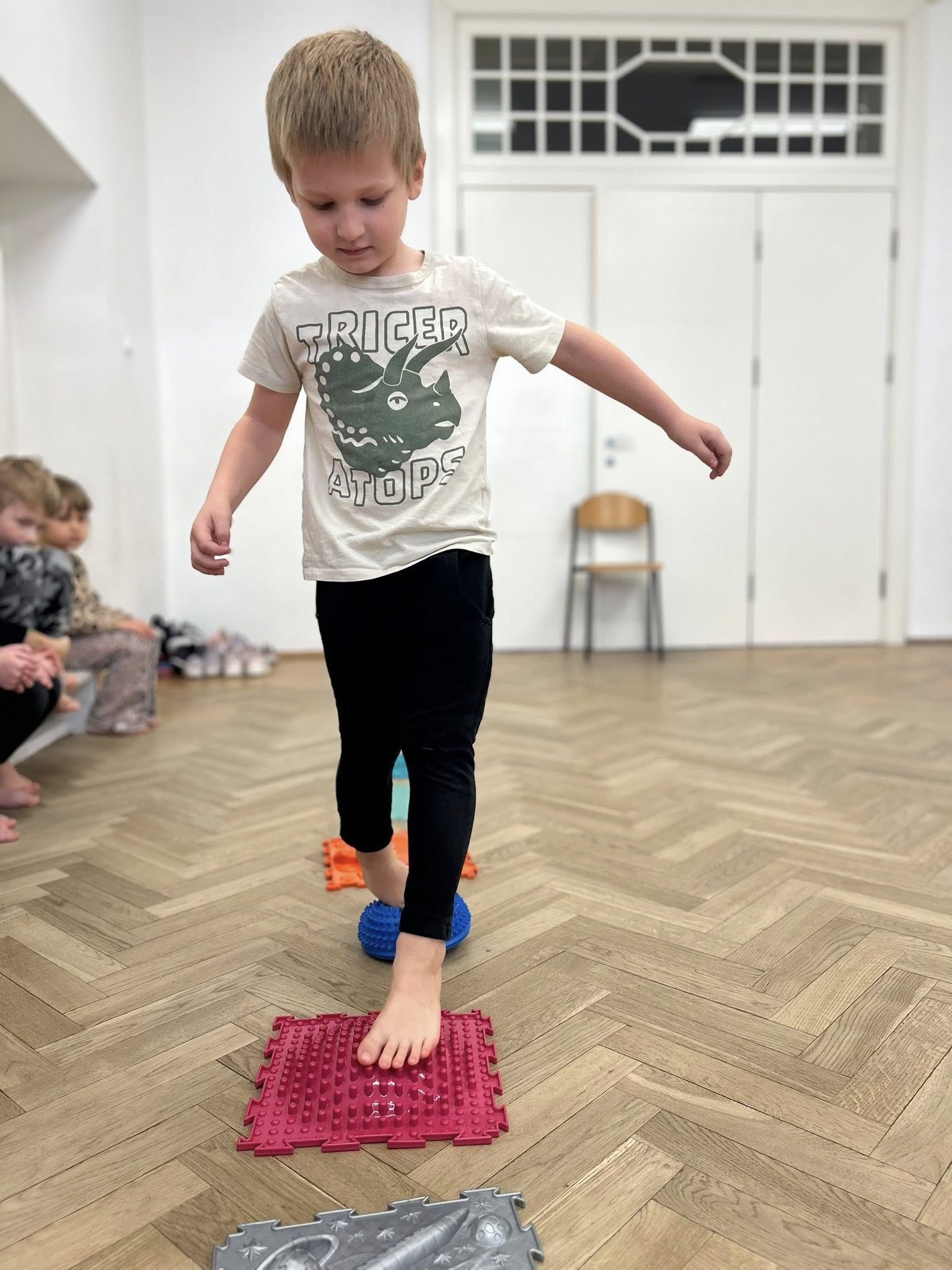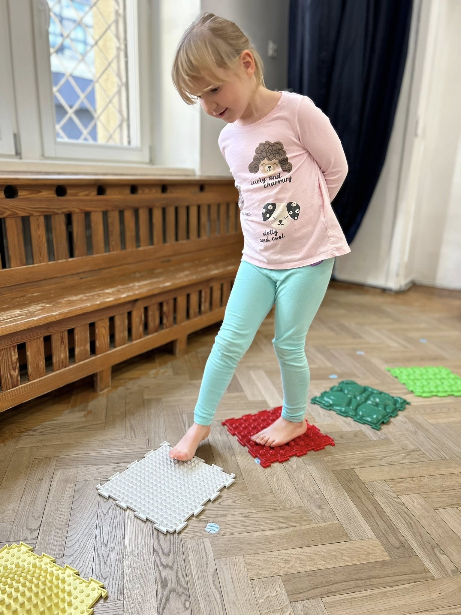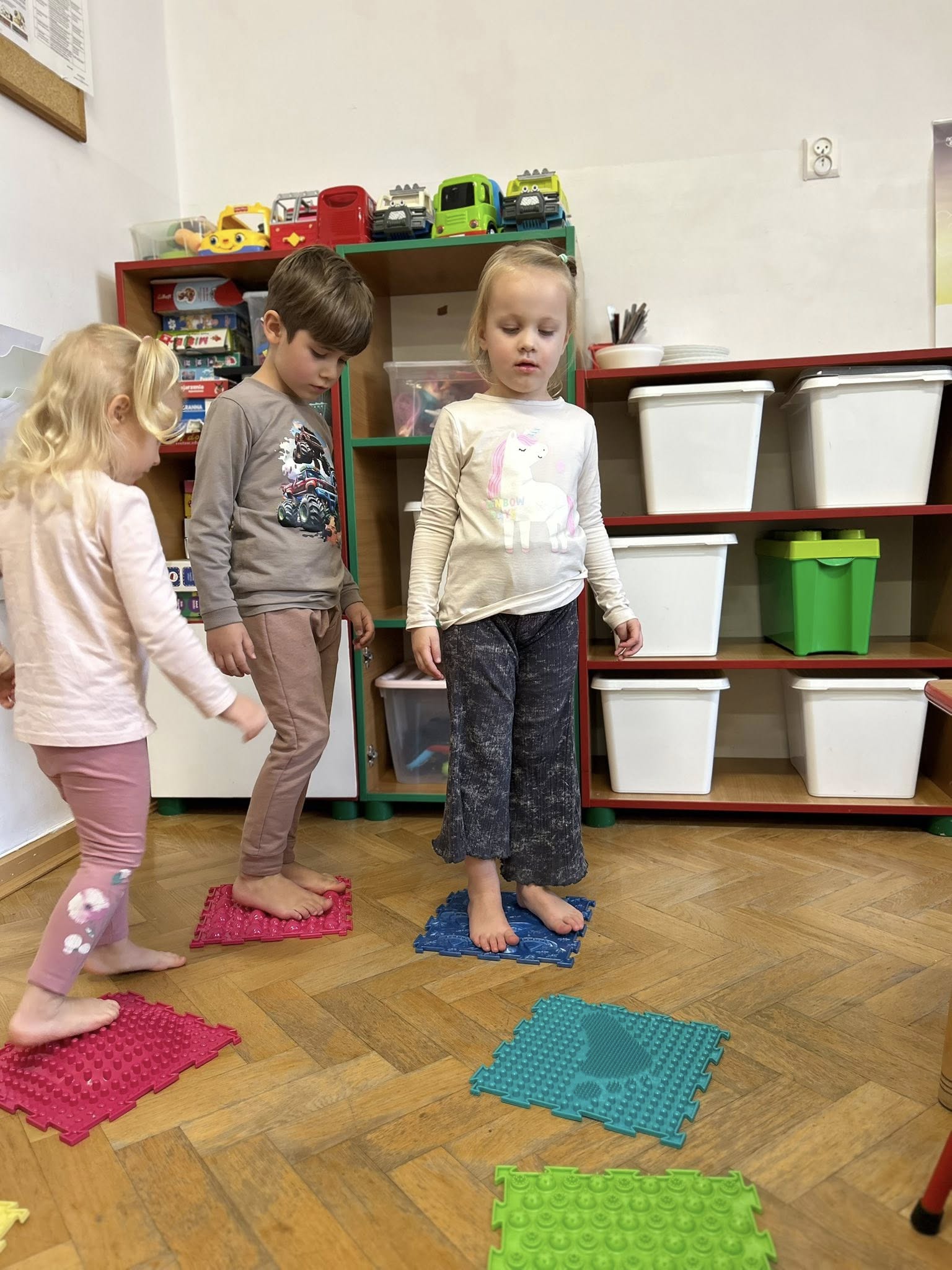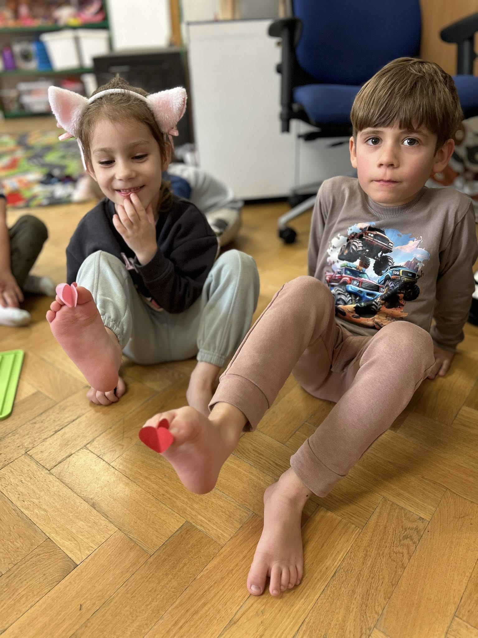 We wtorek 21 pażdziernika obchodziliśmy Dzień Bez Skarpetek. Wszystkie dzieci zdjęły buty i skarpetki, a następnie ćwiczyliśmy stopy - chodziliśmy po ścieżce sensorycznej.