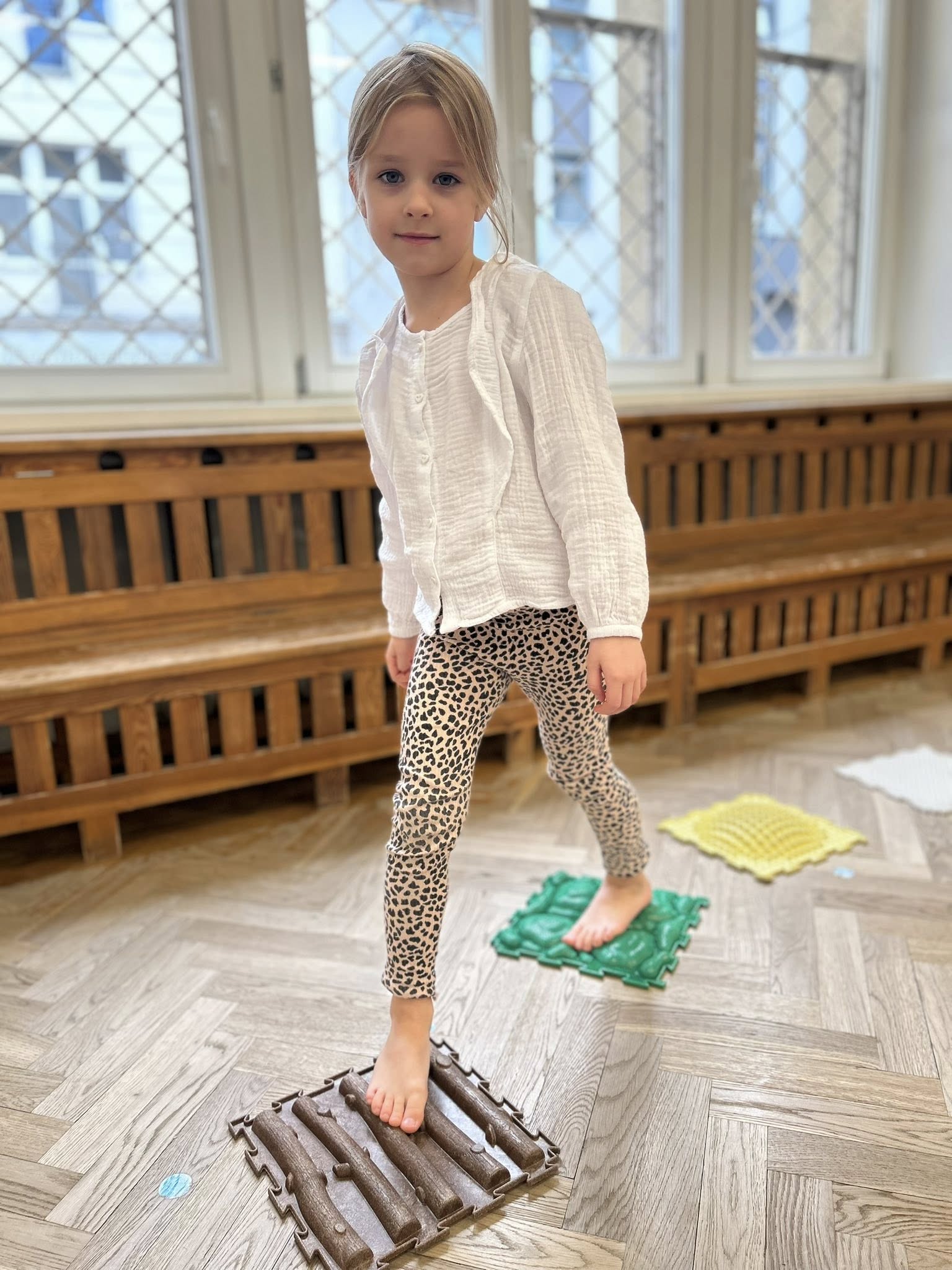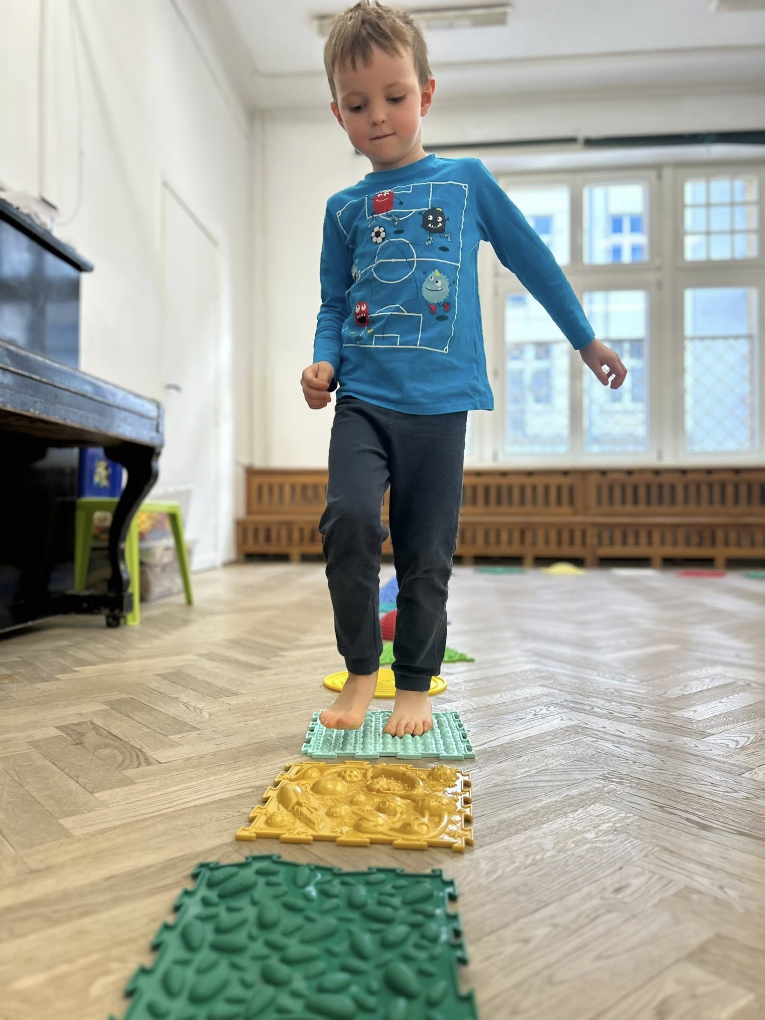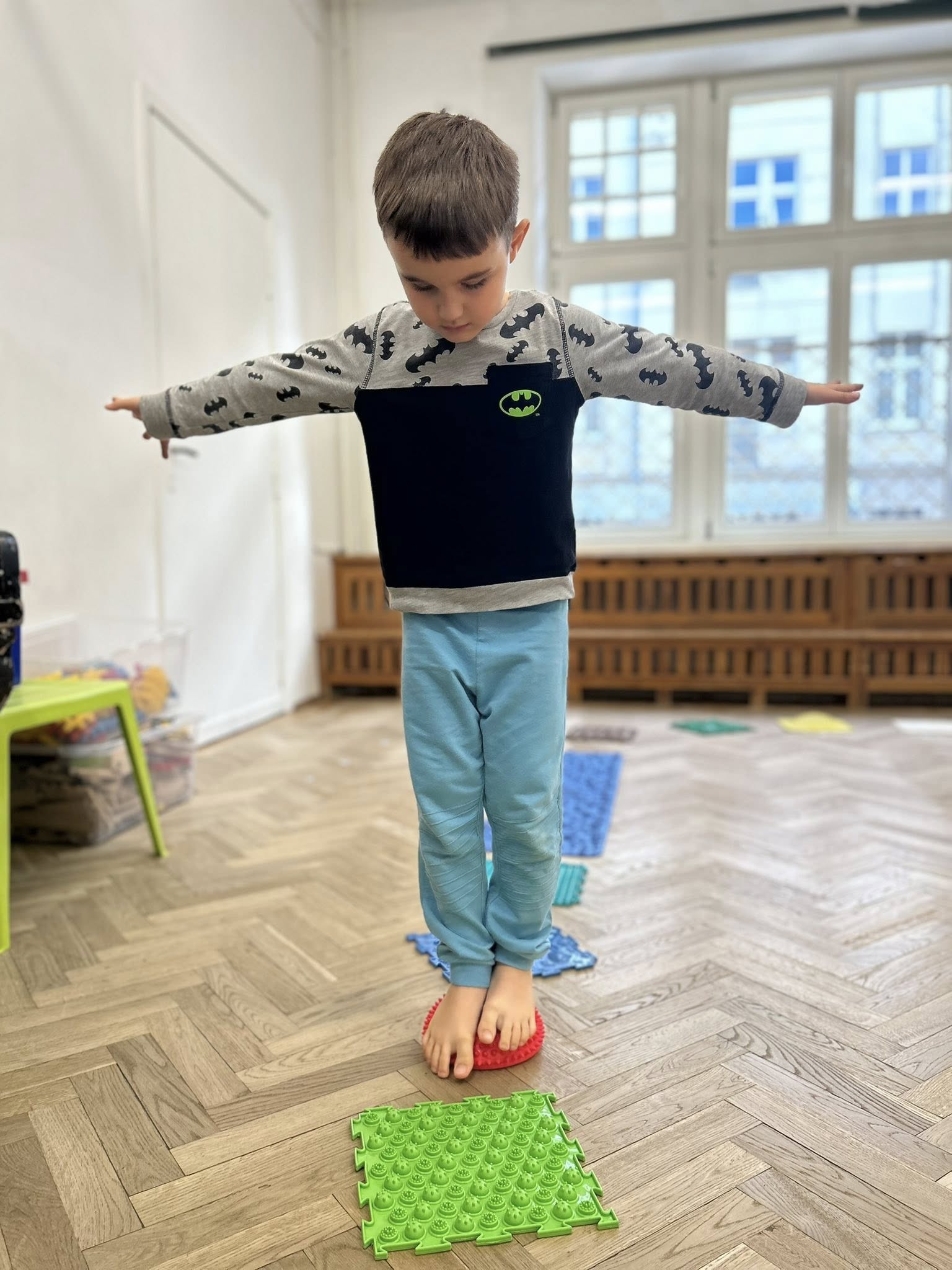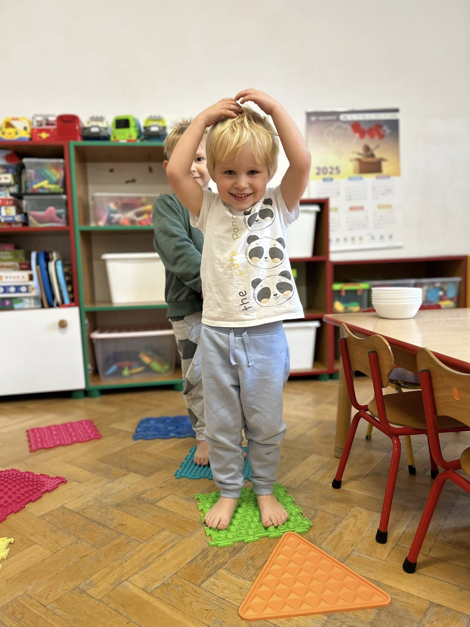 We wtorek 21 pażdziernika obchodziliśmy Dzień Bez Skarpetek. Wszystkie dzieci zdjęły buty i skarpetki, a następnie ćwiczyliśmy stopy - chodziliśmy po ścieżce sensorycznej.