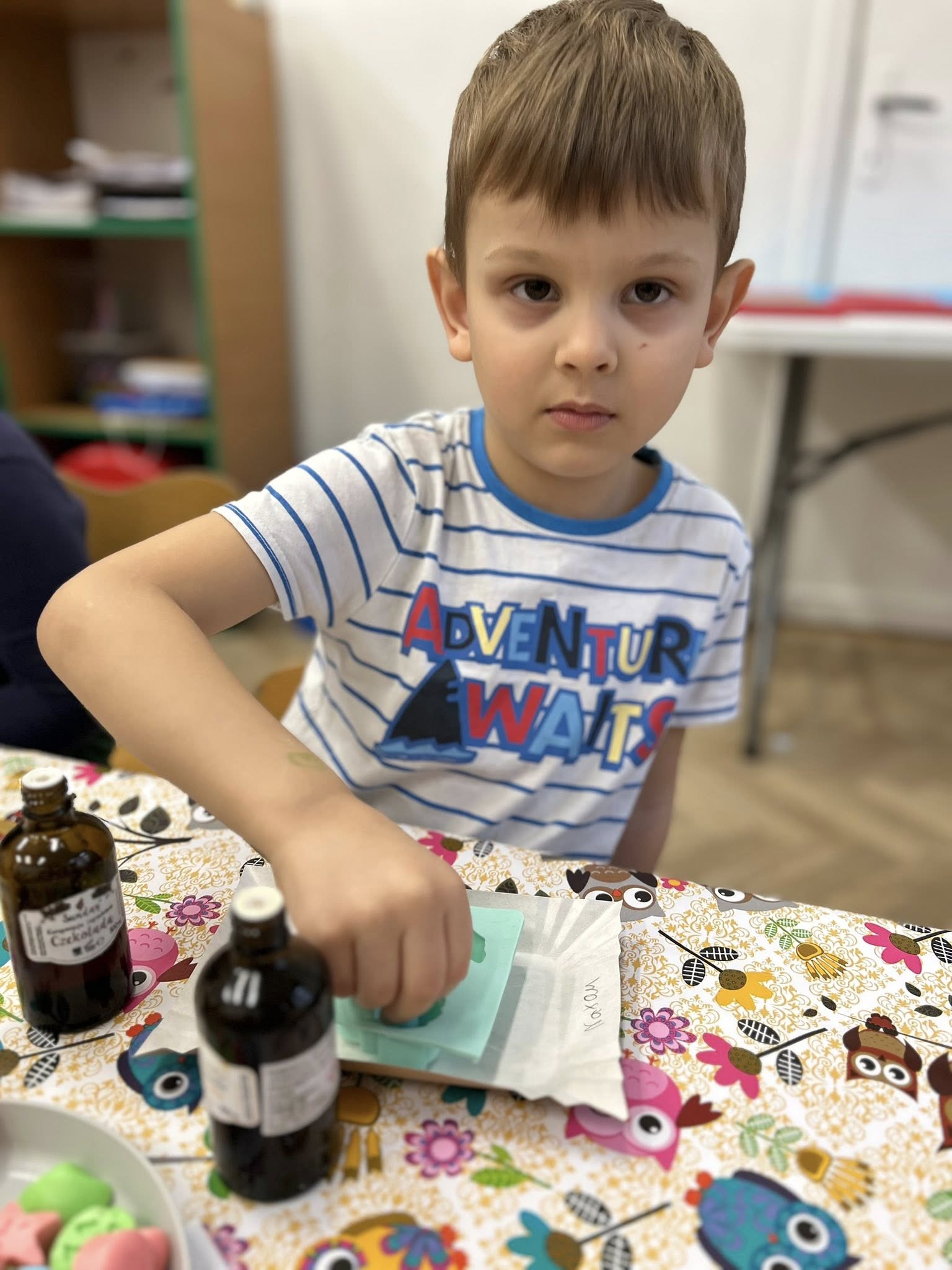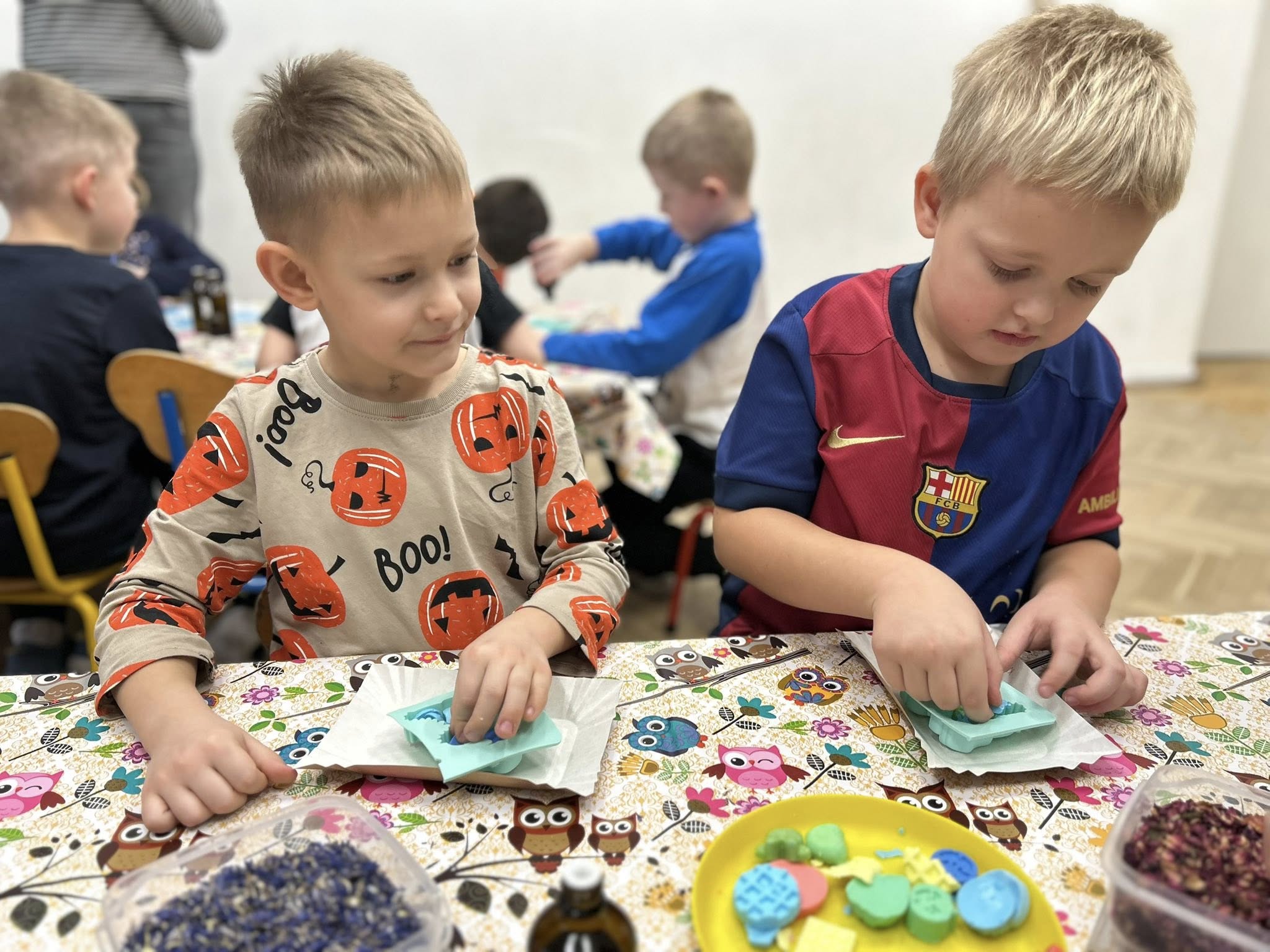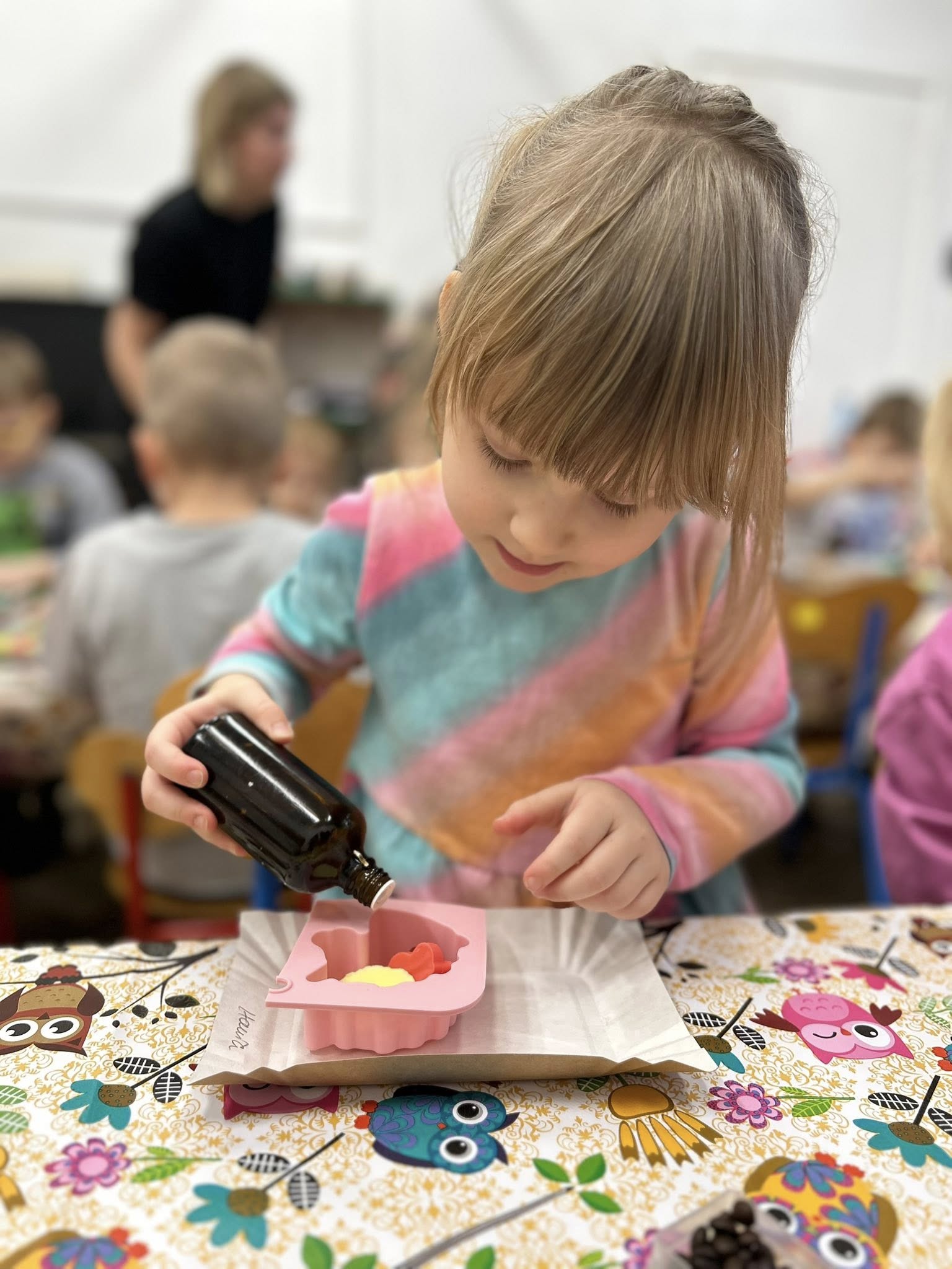 W naszym przedszkolu odbyły się warsztaty, podczas których tworzyliśmy mydełka. Dzieci podczas zajęć poznały historię mydła, a także zapoznały się z instrukcją dokładnego mycia rąk. Przedszkolaki samodzielnie stworzyły kolorowe i pachnące mydełka w rozmaitych kształtach o pięknych zapachach.