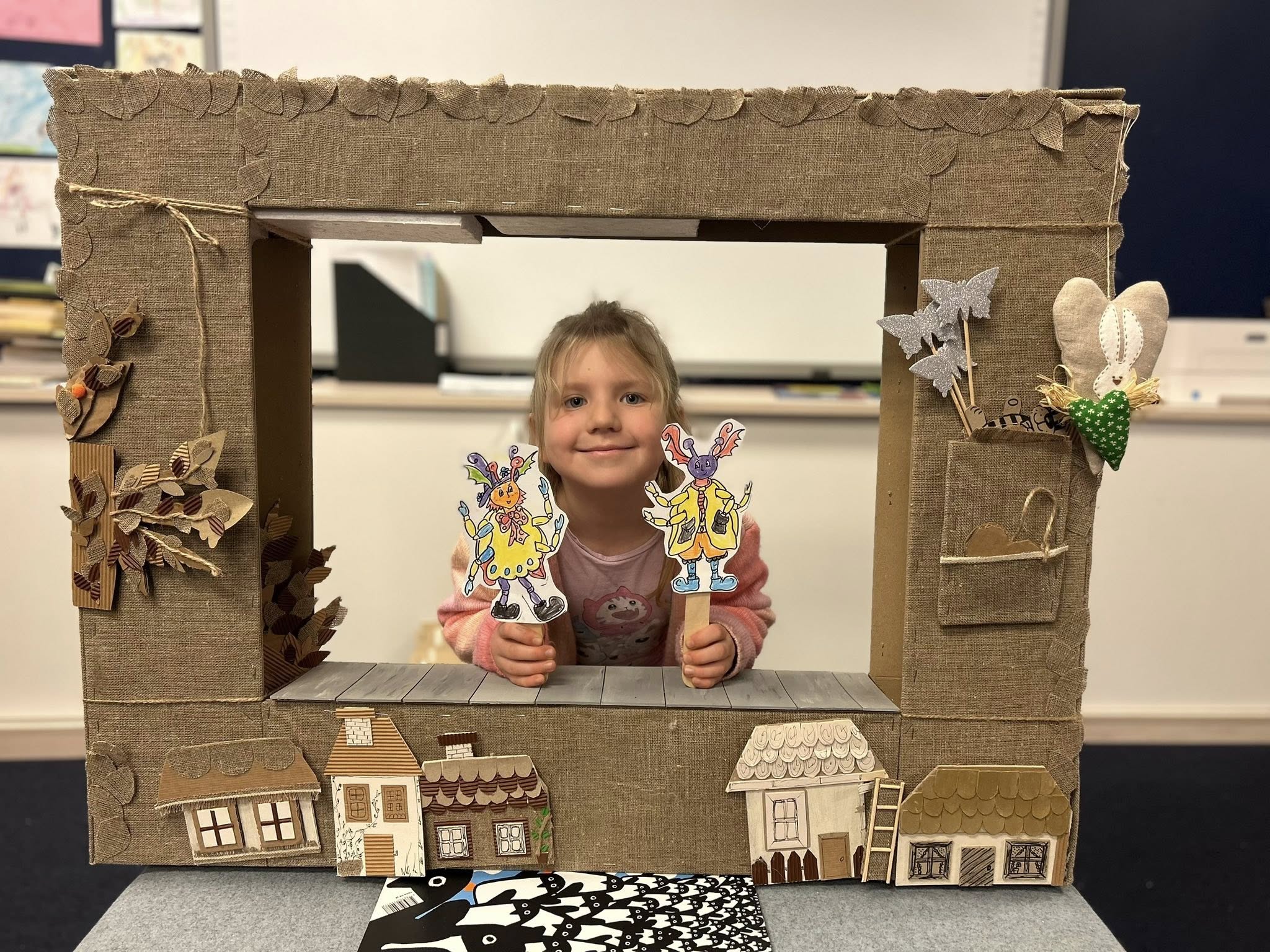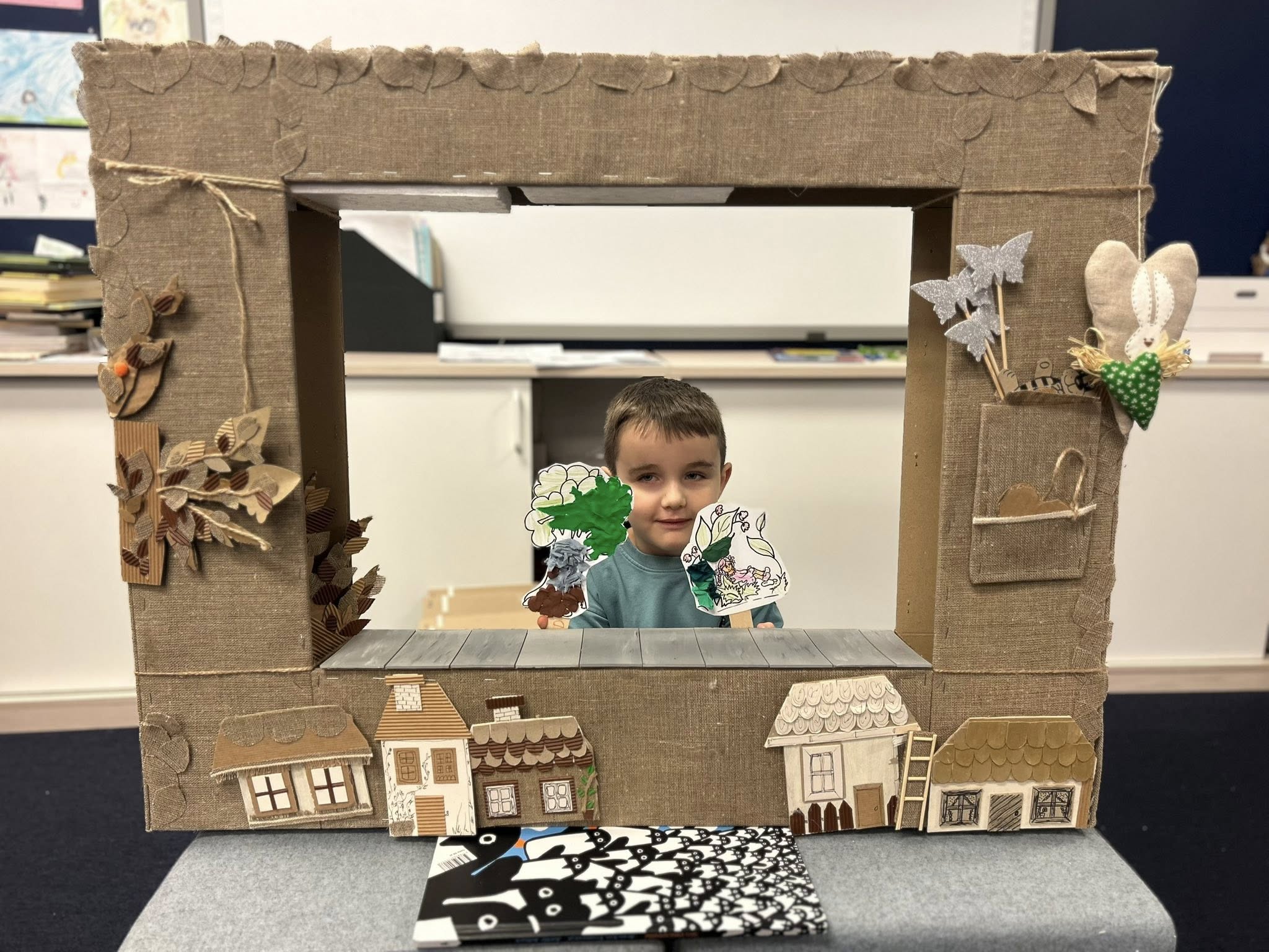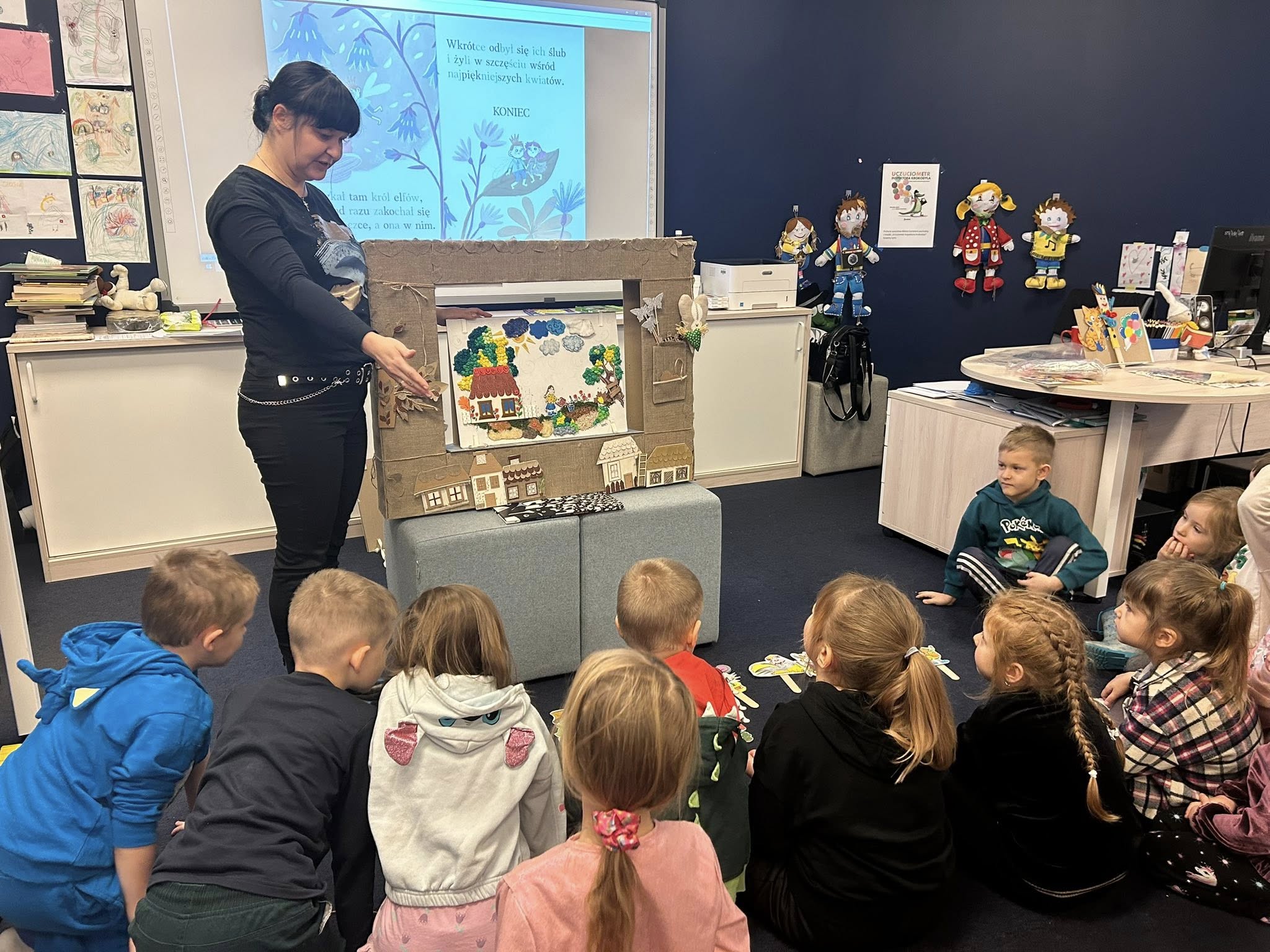 Dzieci z zaciekawieniem wysłuchały bajki pt.: ,,Calineczka”, następnie dopasowywali kukiełki do fragmentów bajki.