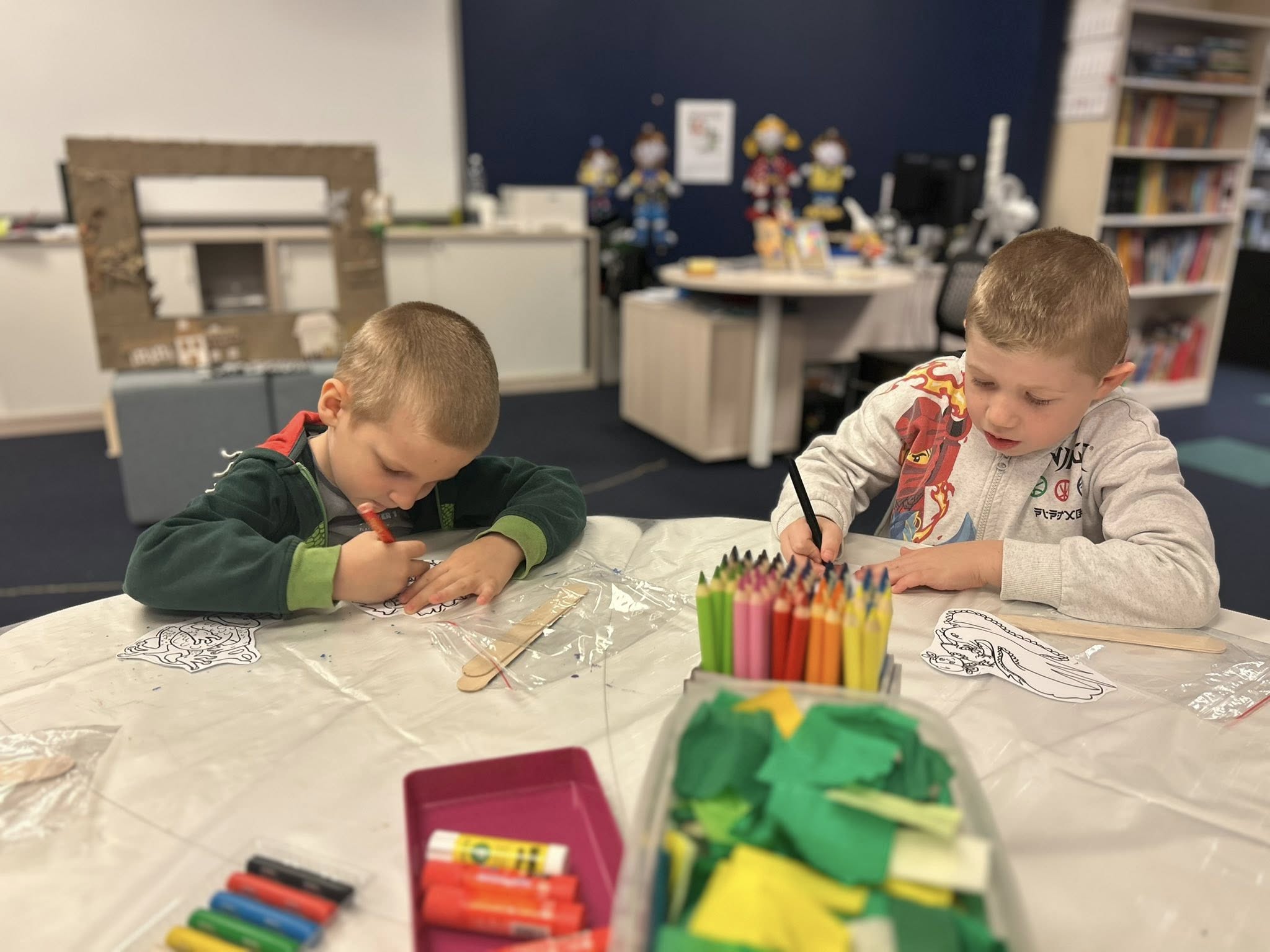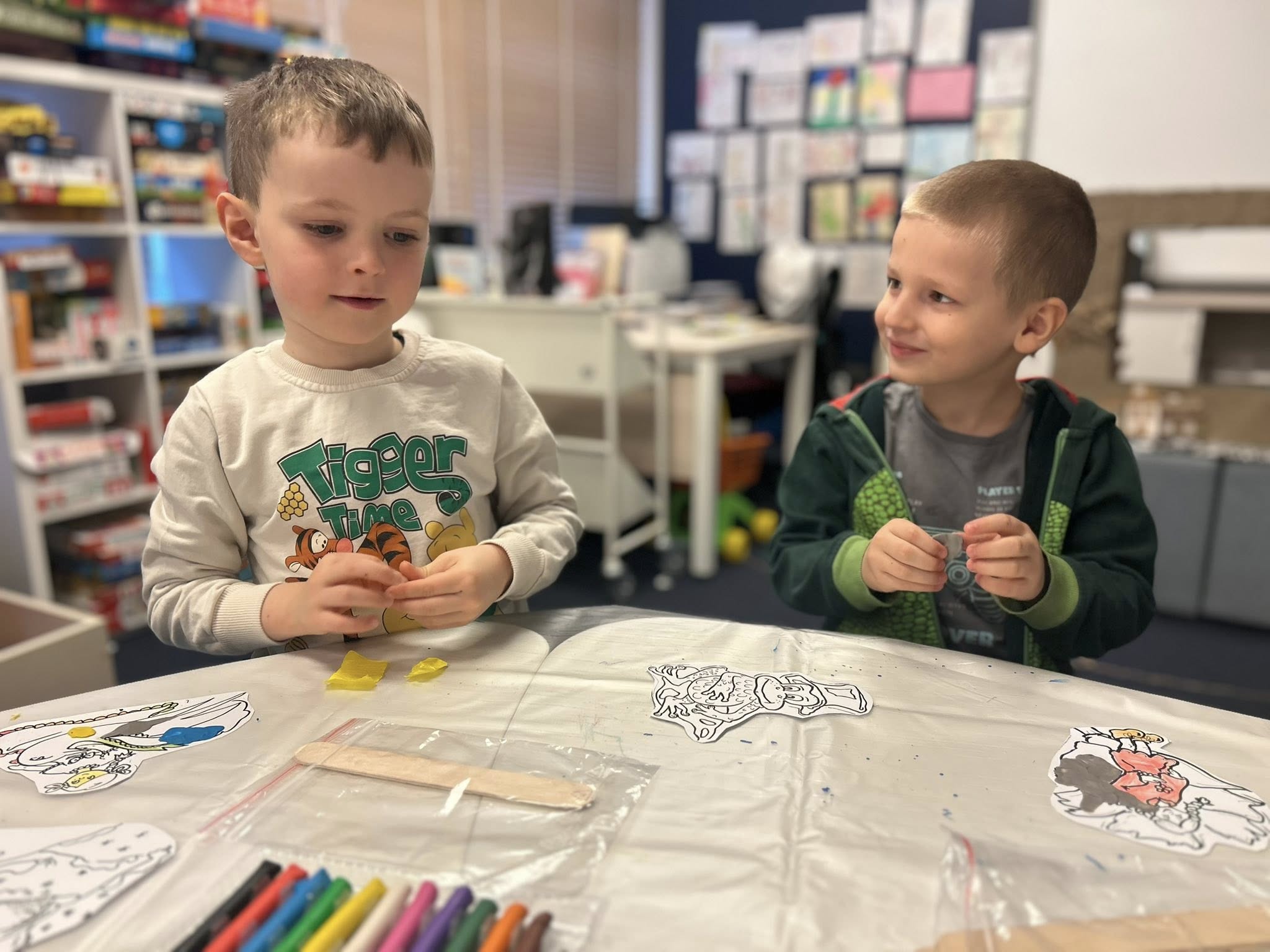 Na sam koniec dzieci ozdobiły swoje dwie kukiełki.