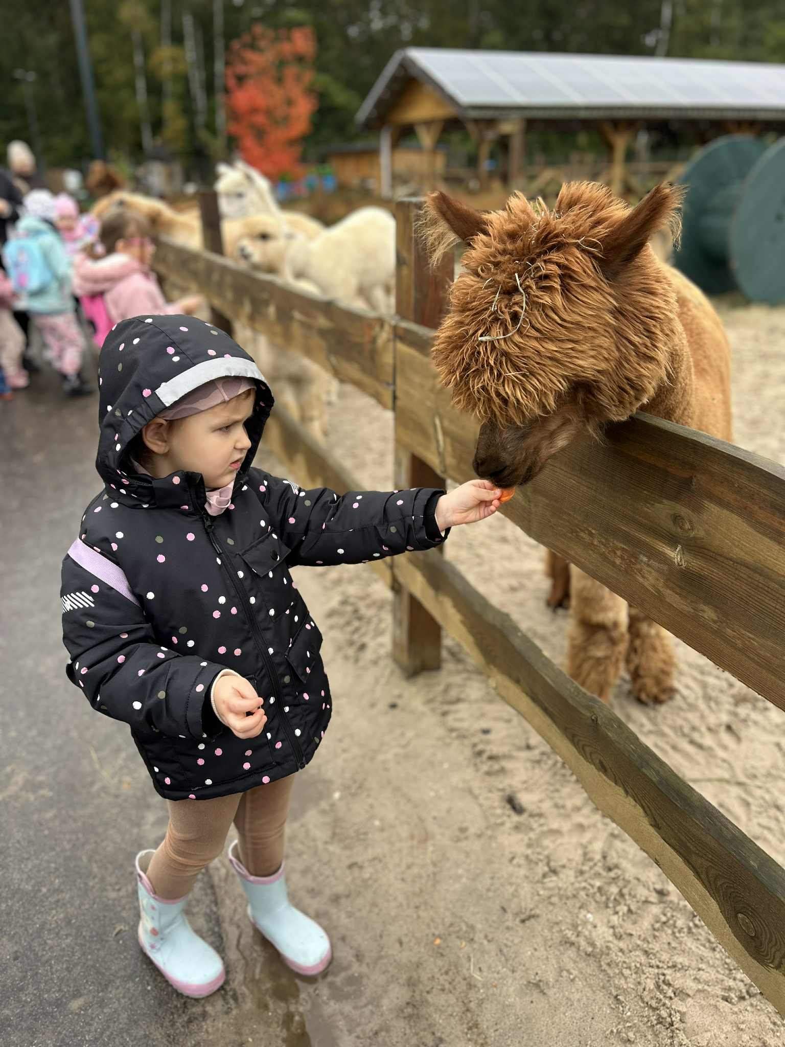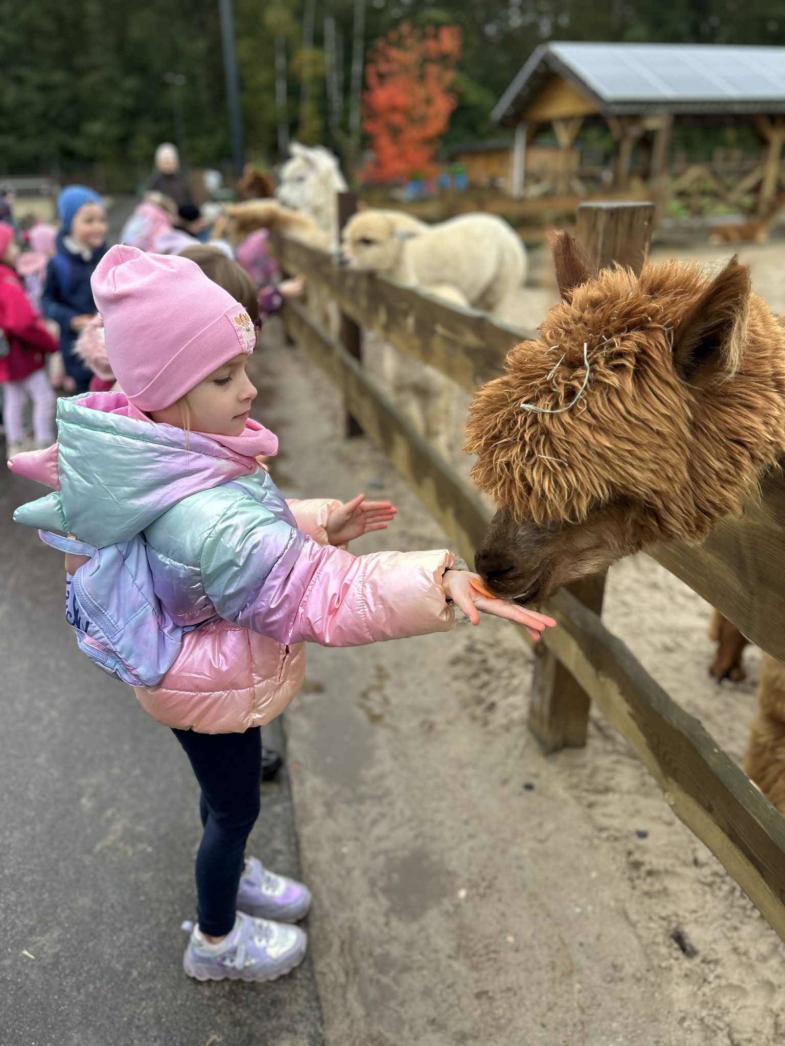 9 października 2025 roku grupa II „Pszczółki" i grupa IV „Tygryski" pojechały na wycieczkę do Mini Zoo Dobronianki w Dobroniu. Celem wycieczki były: obserwacja i czerpanie pozytywnych wrażeń w kontakcie z przyrodą, zainteresowanie różnorodnością gatunkową świata zwierząt oraz kształtowanie świadomości ekologicznej. Przedszkolaki miały możliwość poznać różne zwierzęta takie jak: alpaki, kozy, konie, wielbłądy, osły, mary, króliki, pawie i wiele innych. Każdy miał możliwość bezpośredniego kontaktu ze zwierzętami a także ich nakarmienia.