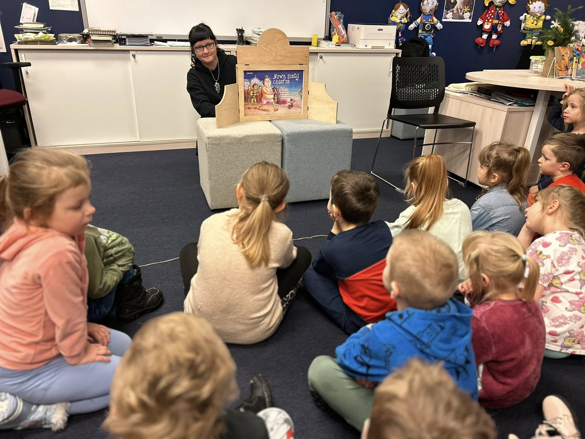 Nasze starszaki poszły na wycieczkę do Wojewódzkiej Biblioteki Publicznej im. Marszałka Józefa Piłsudskiego w Łodzi. Dzieci uczestniczyły w zajęciach pt.: ,,Nowe szaty cesarza”. Dzieci wysłuchały bajki i przygotowały kukiełki, projektując swoje stroje.